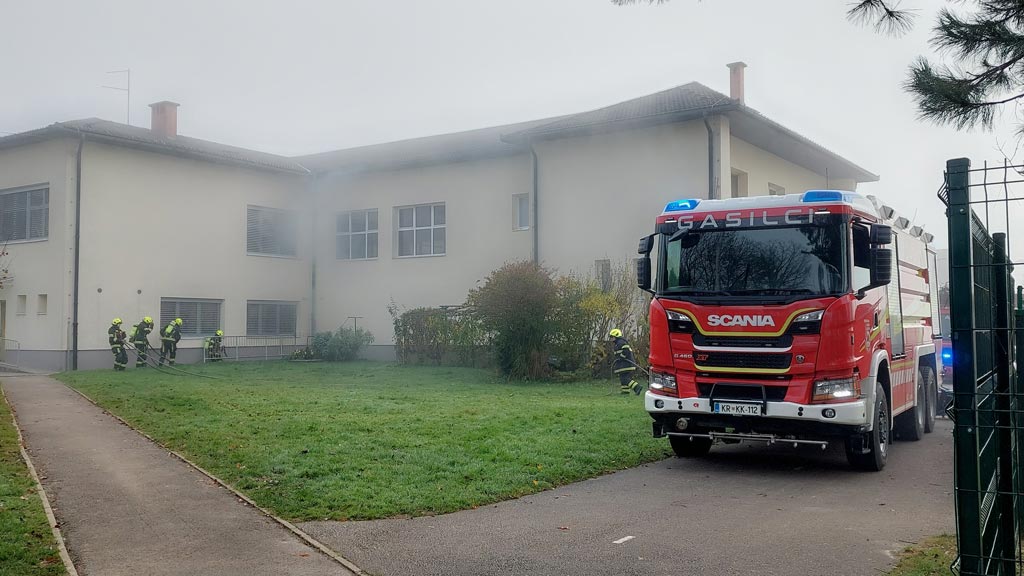 Ob 9. uri je bil v kletnih prostorih šole zaznan »požar«. Takoj je stekel alarmni postopek: obveščanje gasilcev, opozarjanje zaposlenih in usmerjanje vseh prisotnih. Evakuacija je potekala hitro, organizirano in mirno. Učenci, otroci iz vrtca in zaposleni smo se po začrtani poti zbrali na šolskem igrišču, kjer smo pričakali prihod gasilcev.