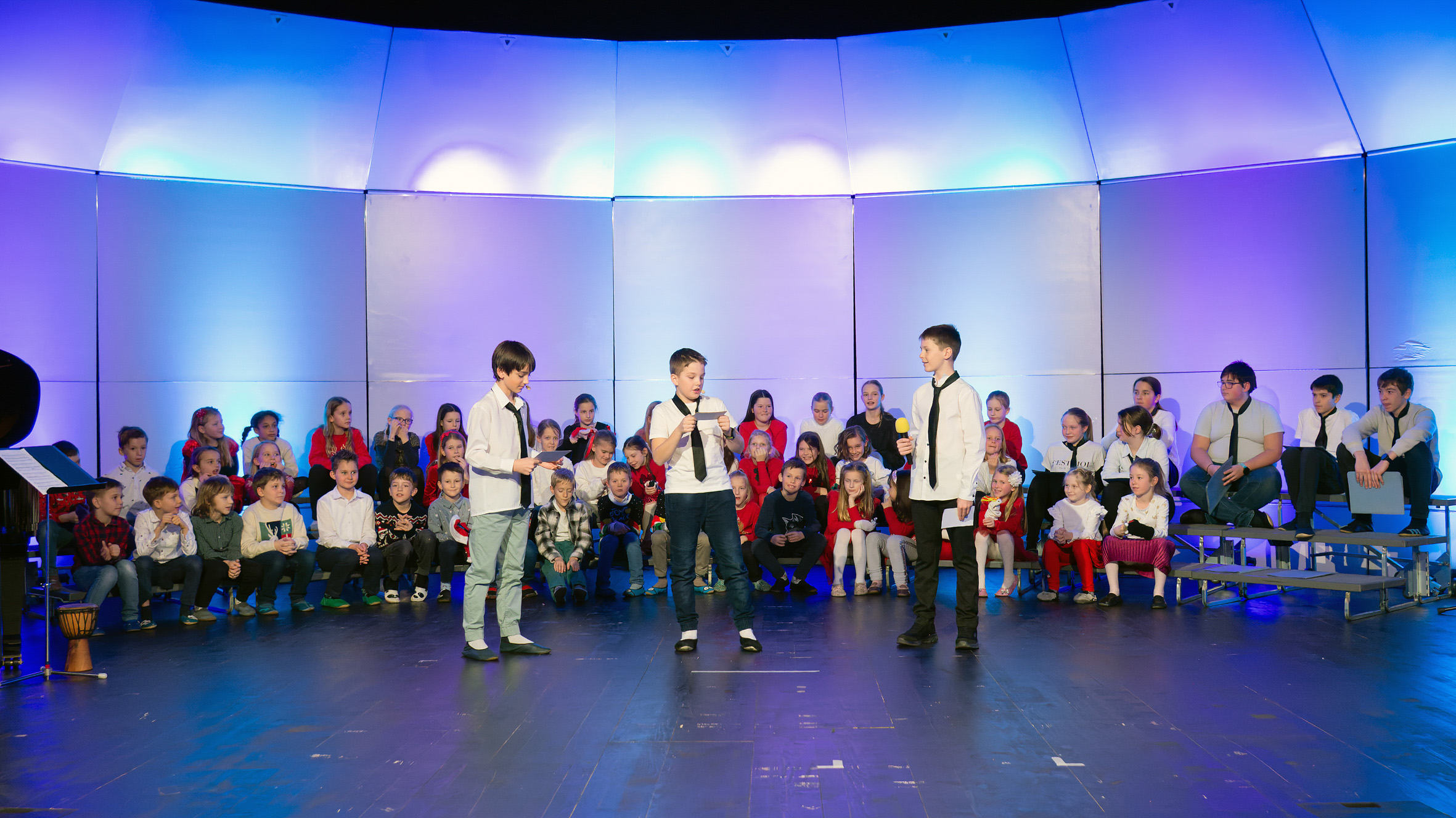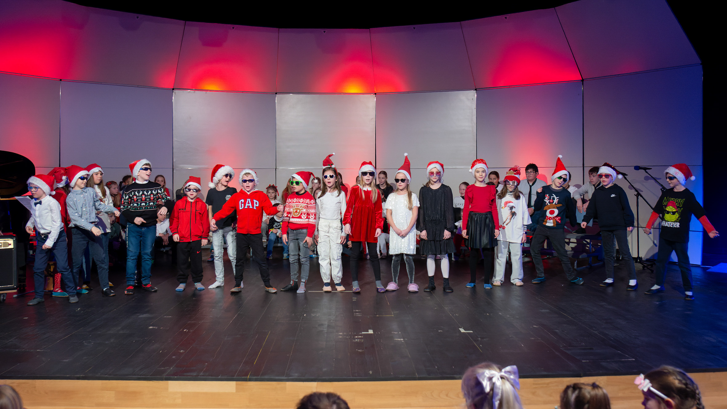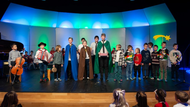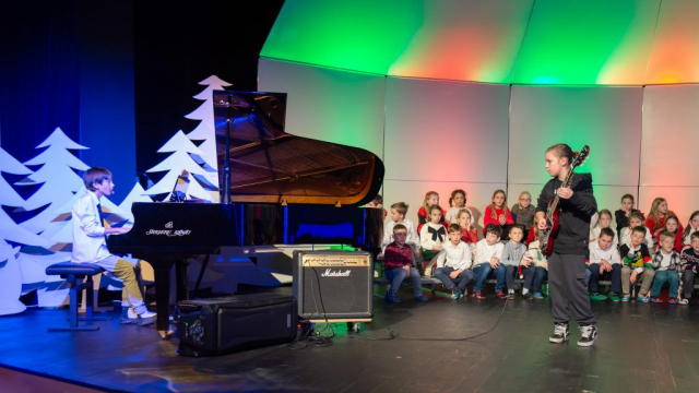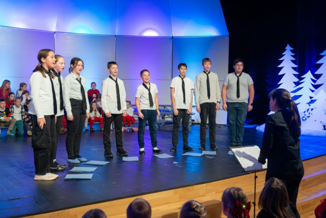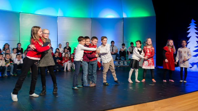 Letošnji ZIMSKI KONCERT OŠ DAVORINA JENKA je bil res pester. Pred polno dvorano navdušene publike so svoje umetniške točke predstavili učenci 3.a kot reperji, učenci 4.a s kavbojskim plesom in pesmijo, 5.a in dramskimkrožek z dramatizacijo in angleško pesmijo, kitarist Svit in pianist Lovro z božično improvizacijo ter vsi šolski zbori – Pevska pripravnica Cerklje in Zalog, OPZ Cerklje in Zalog ter MPZ Cerklje. Slikovitost so zborovskim pesmim dodali še koledniki v trikraljevskih oblačilih, mladi inštrumentalisti, lutke “opravljive sosede”, ki so si jih izdelala dekleta OPZ ter z bodypercussionom pospremljeno petje mladincev. Vse zborovske točke je spremljal pianist Gašper Jereb, posamične točke pa so pripravili učitelji Gaber Krč, Petra Fajdiga, Eva Petek, Neža Križnar Ristič in Irma Močnik, ki je poskrbela tudi za vezno besedilo treh prikupnih voditeljev (Jani, Tilen in Lovro) in organizacijo koncerta. Za tehnično pomoč se zahvaljujemo učencema Luku Jenku in Jonu Rosulniku, učiteljici Mojci Krovinović ter mojstroma Vidu in Timu Frantarju. Program je zaokrožilo še voščilo učiteljice Vanje Sodnik, ki je kot vodja zaloške podružnične šole zastopala vodstvo šole. Polni prijetnih umetniških doživetij, lepih novoletnih želja in toplih človeških srečanj smo se s posladki v rokah odpravili domov.