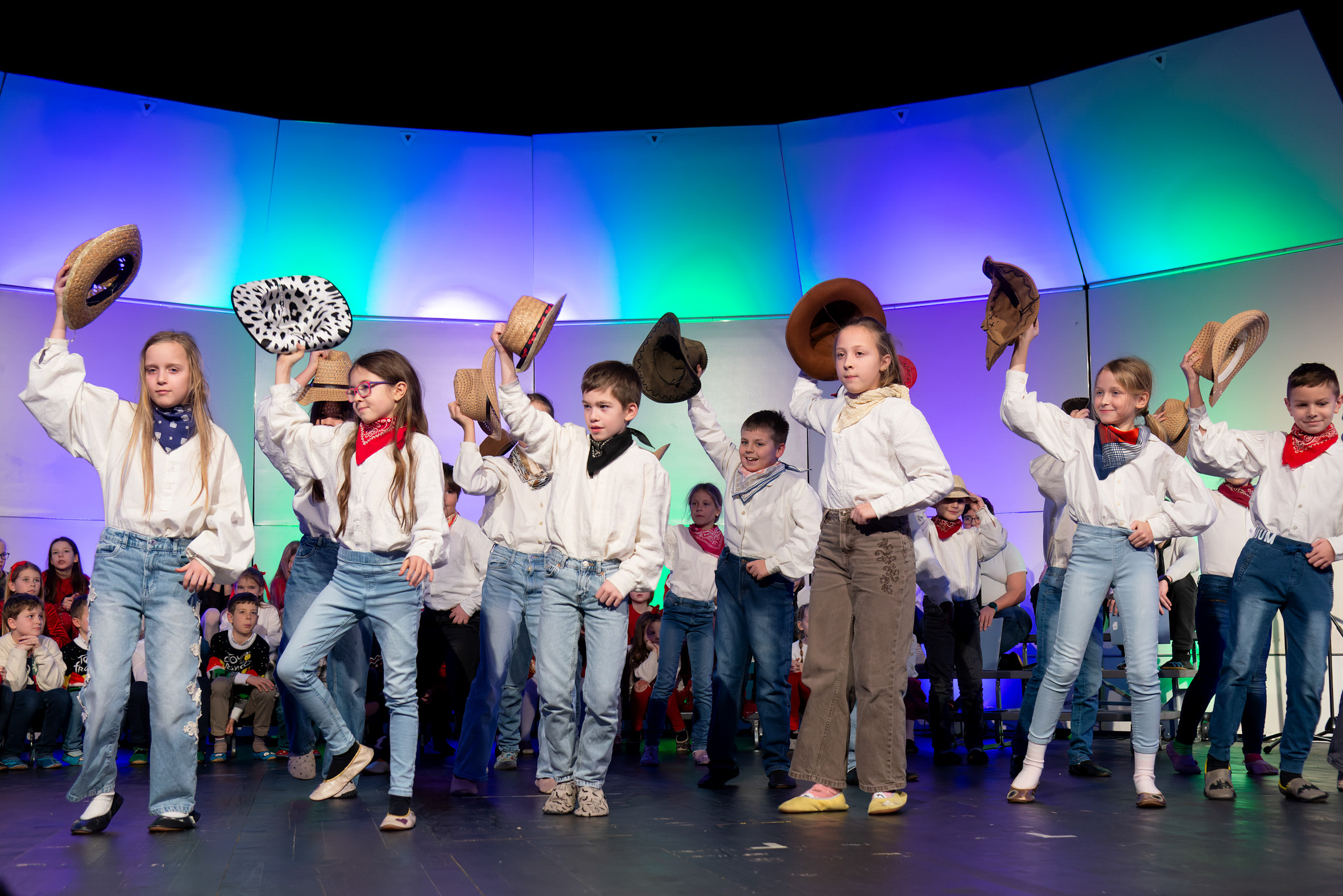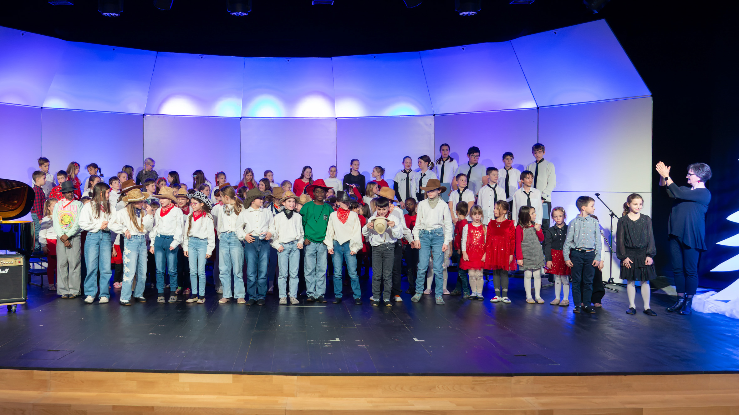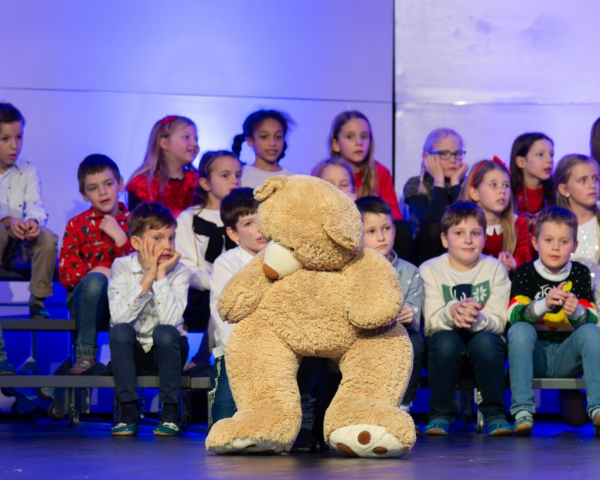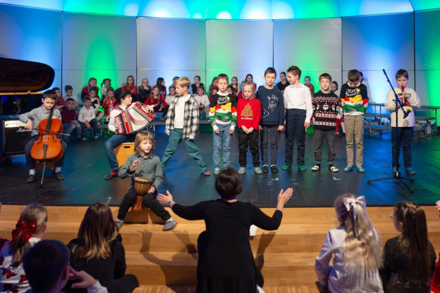 Letošnji ZIMSKI KONCERT OŠ DAVORINA JENKA je bil res pester. Pred polno dvorano navdušene publike so svoje umetniške točke predstavili učenci 3.a kot reperji, učenci 4.a s kavbojskim plesom in pesmijo, 5.a in dramskimkrožek z dramatizacijo in angleško pesmijo, kitarist Svit in pianist Lovro z božično improvizacijo ter vsi šolski zbori – Pevska pripravnica Cerklje in Zalog, OPZ Cerklje in Zalog ter MPZ Cerklje. Slikovitost so zborovskim pesmim dodali še koledniki v trikraljevskih oblačilih, mladi inštrumentalisti, lutke “opravljive sosede”, ki so si jih izdelala dekleta OPZ ter z bodypercussionom pospremljeno petje mladincev. Vse zborovske točke je spremljal pianist Gašper Jereb, posamične točke pa so pripravili učitelji Gaber Krč, Petra Fajdiga, Eva Petek, Neža Križnar Ristič in Irma Močnik, ki je poskrbela tudi za vezno besedilo treh prikupnih voditeljev (Jani, Tilen in Lovro) in organizacijo koncerta. Za tehnično pomoč se zahvaljujemo učencema Luku Jenku in Jonu Rosulniku, učiteljici Mojci Krovinović ter mojstroma Vidu in Timu Frantarju. Program je zaokrožilo še voščilo učiteljice Vanje Sodnik, ki je kot vodja zaloške podružnične šole zastopala vodstvo šole. Polni prijetnih umetniških doživetij, lepih novoletnih želja in toplih človeških srečanj smo se s posladki v rokah odpravili domov.
