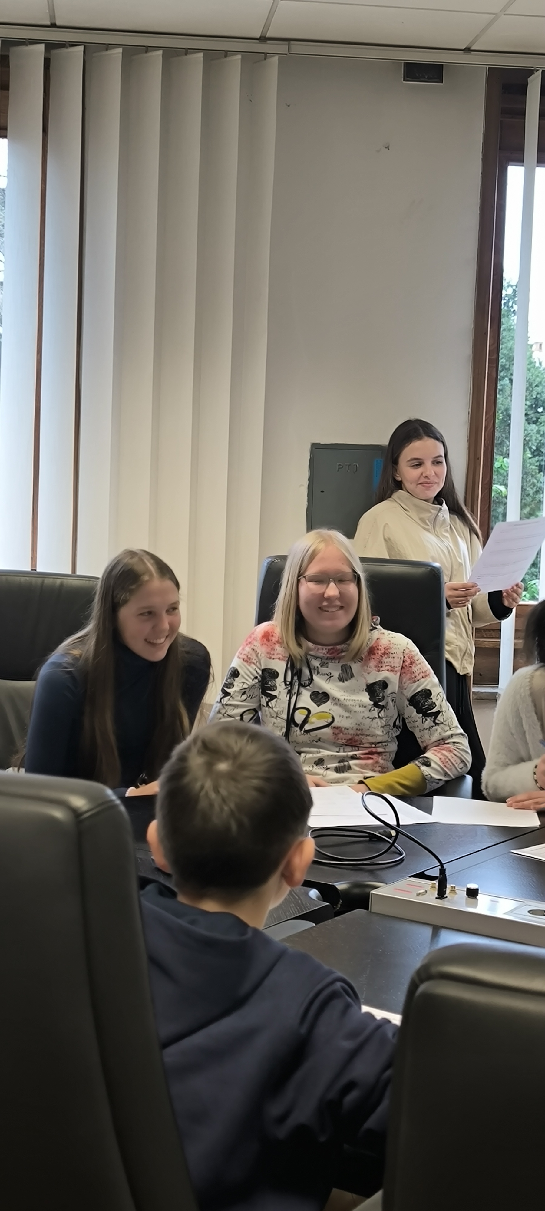 14.4.2026 smo se učenke naše šole v spremstvu mentorjev, Petra Štefančiča in Urške Močnik, udeležile 36. medobčinskekga otroškega parlamenta v prostorih Mestne občine Kranj, kjer nas je sprejel župan Matjaž Rakovec.