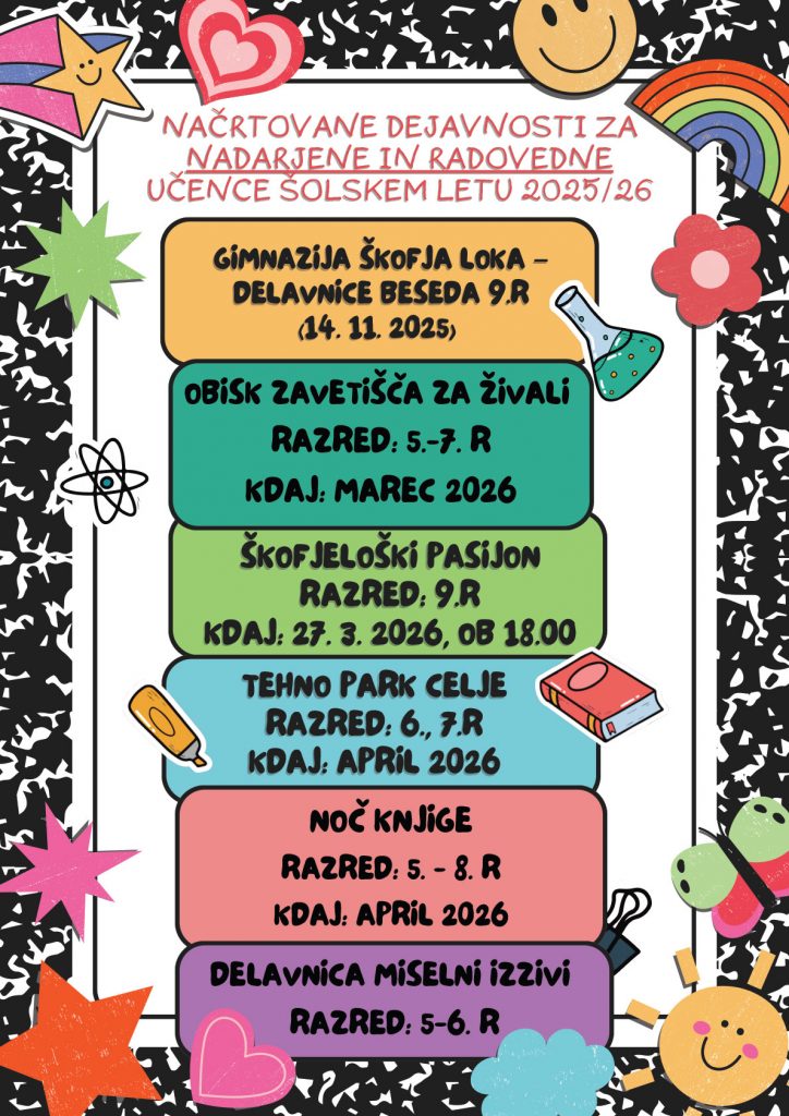 Tukaj najdete izzive in dejavnosti za nadarjene in radovedne učence.
