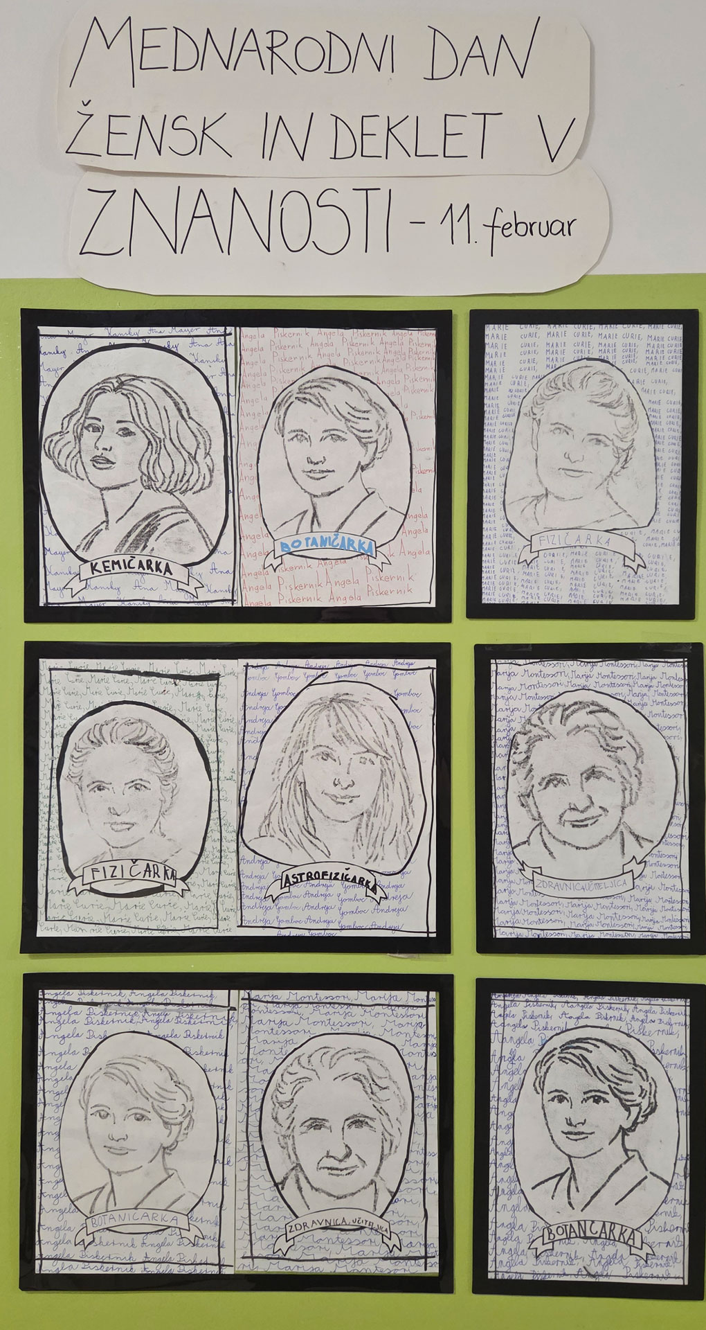 Ob Mednarodnem dnevu žensk in deklet v znanosti (11. februar) se je naša učilnica spremenila v pravo malo raziskovalno središče! Učenci 3. razreda so spoznavali navdihujoče znanstvenice, kot so Marie Curie, Angela Piskernik, Marije Montessori, Andreje Gomboc in Ane Mayer Kansky – pogumne ženske, ki so s svojim znanjem spreminjale svet. Z veliko natančnosti so risali njihove portrete, zapisovali njihova imena ter odkrivali, na katerih področjih so delovale – od kemije in fizike do botanike, astrofizike in medicine. Ob ustvarjanju so razvijali pisno izražanje, likovno domišljijo in raziskovalno radovednost, predvsem pa spoznavali, da je znanost odprta za vse. Dan je bil poln ustvarjalnosti, novih spoznanj in ponosa na dosežke žensk v znanosti.